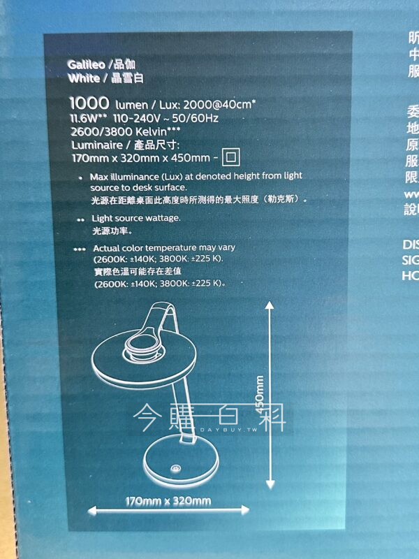 偏光光學設計,燈頭可旋轉,四段調光模式,電壓:110-240V,流明:1000LM,A級照度均勻。