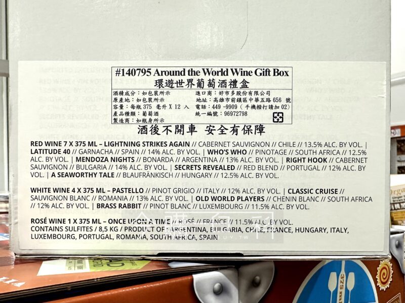 禮盒內含12支不同的紅酒,白酒和粉紅葡萄酒組合而成,適合送禮、聚餐、派對活動,適合聖誔節送禮自用兩相宜,來自法國、西班牙、葡萄牙、盧森堡、義大利、匈牙利、保加利亞、羅馬尼亞、南非、智利、限根廷等國家。