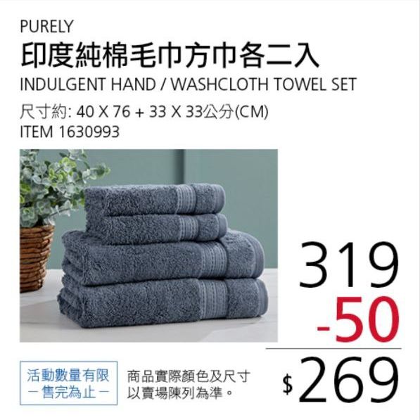 PURELY INDULGENT 印度純棉毛巾/方巾 各二入 #1630993