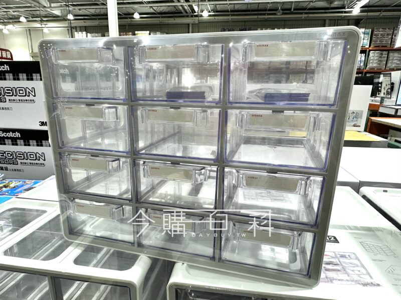 透明抽屜方便識別內容物,每格附有標籤可填寫分類,附有12片隔板可區分空間,適合放置辦公室、遊戲室、工具間、廚房、臥室等,可上下堆疊增加收納空間。