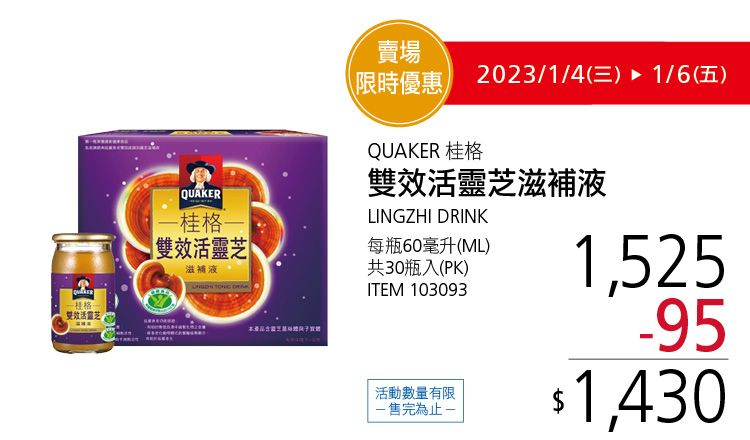 QUAKER 桂格雙效活靈芝滋補液 #103093