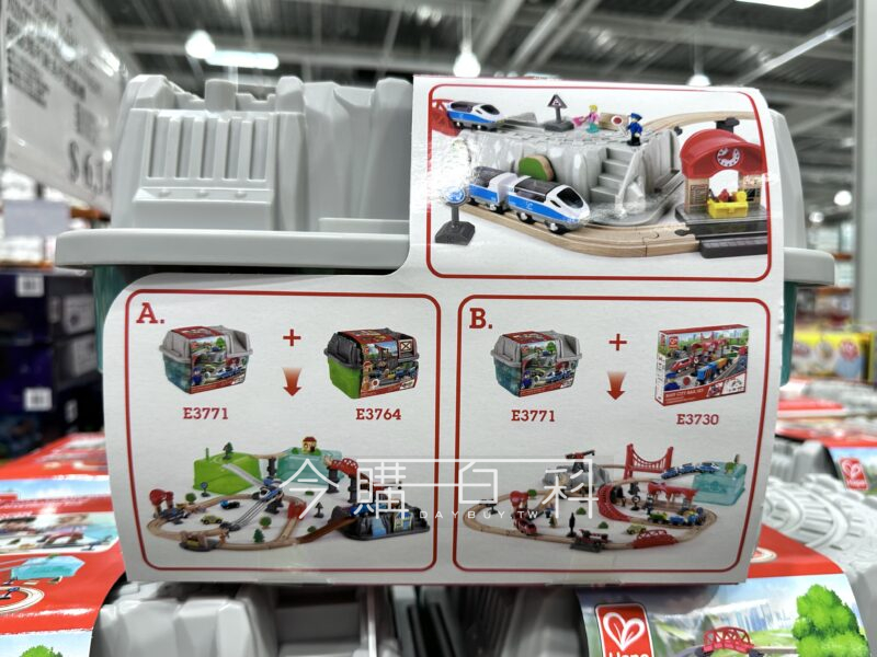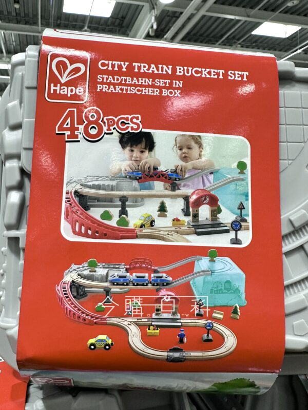 外盒印有城市景觀及軌道岩石蓋可讓火車行駛,多種不同形狀軌道及橋樑,火車及交通標誌配件等,培養孩子創造力及想像力,附收納盒方便收納,適用年齡:三歲以上。