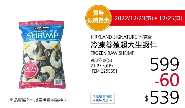 KIRKLAND SIGNATURE 科克蘭養殖超大生蝦仁 #2255551