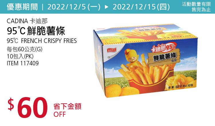 CADINA 卡廸那95°C鮮脆薯條 #117409 – 2篇FB開箱