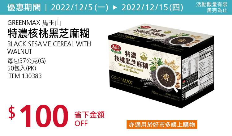 GREENMAX 馬玉山特濃核桃黑芝麻糊 #130383