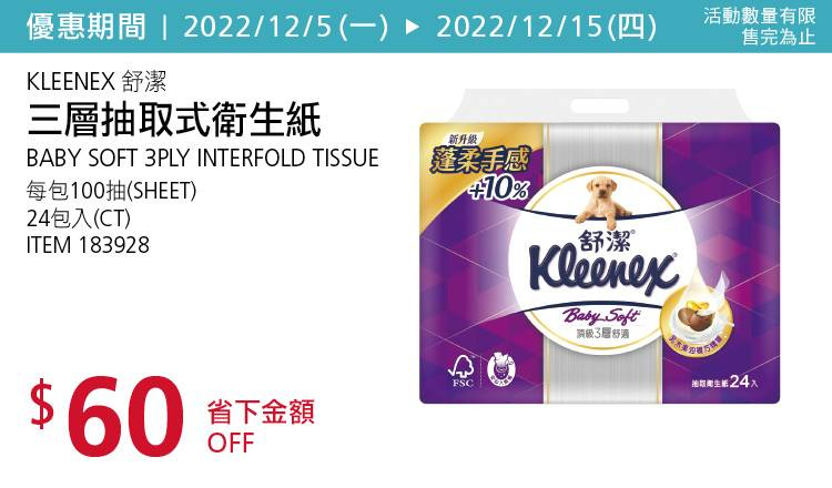 KLEENEX 舒潔三層抽取式衛生紙 #183928