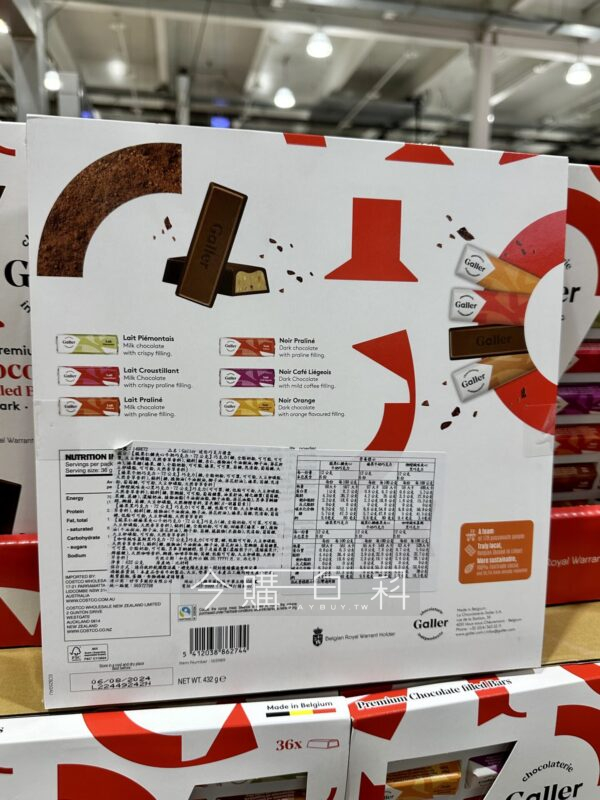 比利時皇家御用品牌之一,3種牛奶巧克力口味以及3種黑巧克力口味,共36條,禮盒造型,送禮最佳選擇。
