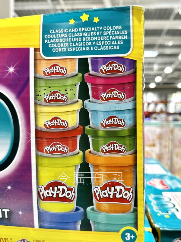 共5種不同類型的黏土,57罐經典彩色黏土,43罐特色秥土,包含閃亮、金屬、超閃光等,附滾筒、刀具兩種模具,豐富的組合進行多種玩法,適用年齡:三歲以上。