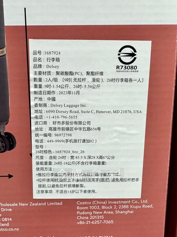 26吋含輪67*45*28公分,TSA海關鎖,耐用靜音輪,手提箱可掛至於行李箱;9吋手提箱23*32*21公分,SECURITECH專利防盜拉鍊,特殊防刮壓紋PC外殼,行李箱內裡多隔層設計。