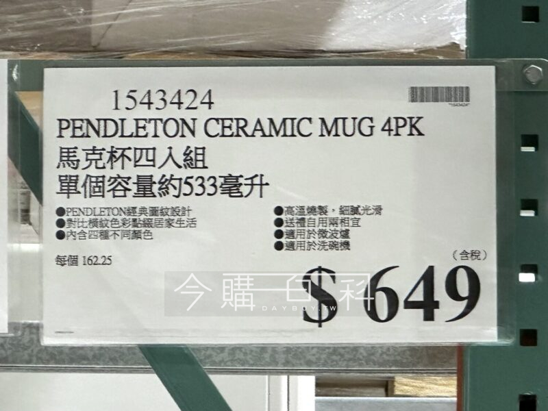 PENDLETON經典圖紋設計,對比橫紋色彩點綴居家生活,內含四種不同顏色,高溫燒製,細膩光滑,送禮自用兩相宜,適用於微波爐,適用於洗碗機。