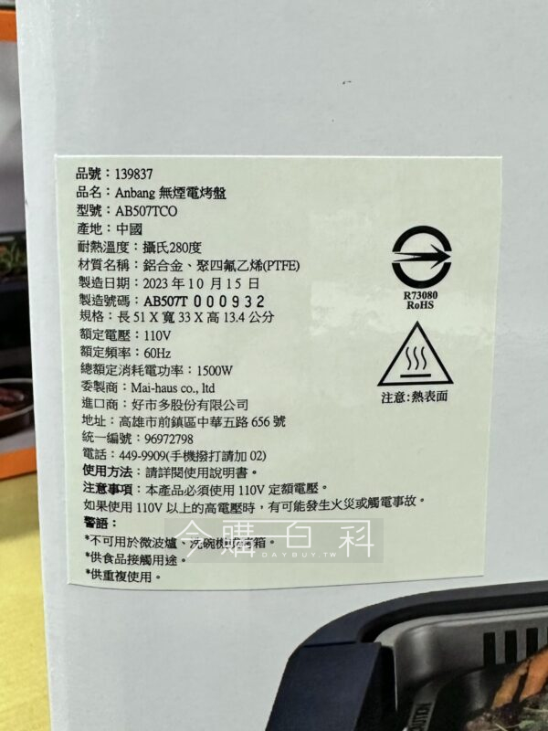 1500瓦消耗功率,開啟冷卻風扇可抽吸煙霧,烤盤不沾塗層耐熱280度C,電子觸控面板,盛水滴油盤,方便清洗,部分配件可用於洗碗機清洗,烤盤約37*24*3.1CM,含烤盤*2、收納袋。
