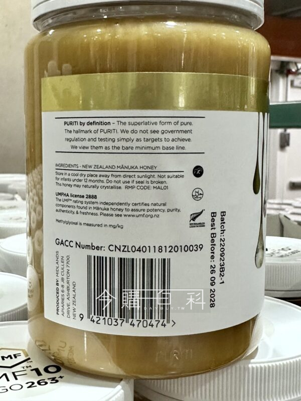 紐西蘭麥蘆卡樹花蜜提煉,UMF 10+獨麥素活性成分,保留優質的營養成份,一歲以下兒童不建議食用,具獨特芳香甜味及保健效益,可直接食用,或加入牛奶中,也可塗抹於麵包與蛋糕食用。