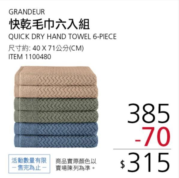 GRANDEUR 快乾毛巾六入組菱格紋 #1100480