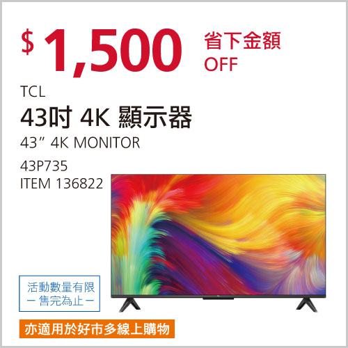 TCL 43吋 4K 顯示器 不適用視訊盒 #136822