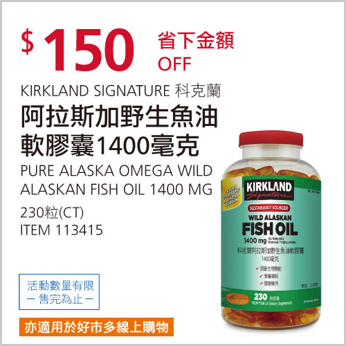 KIRKLAND SIGNATURE 阿拉斯加野生魚油軟膠囊 #113415