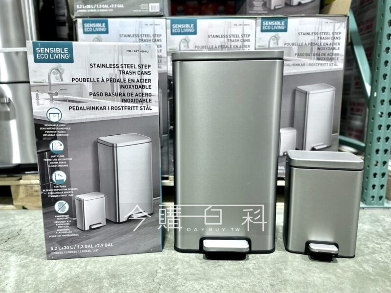 容量:5.2公升+30公升,不鏽鋼砂鋼防指紋表面處理,簡潔時尚外觀設計,帶防滑墊,靜音緩降桶蓋,可移動塑膠內桶方便清潔,腳踏操作方便衛生。