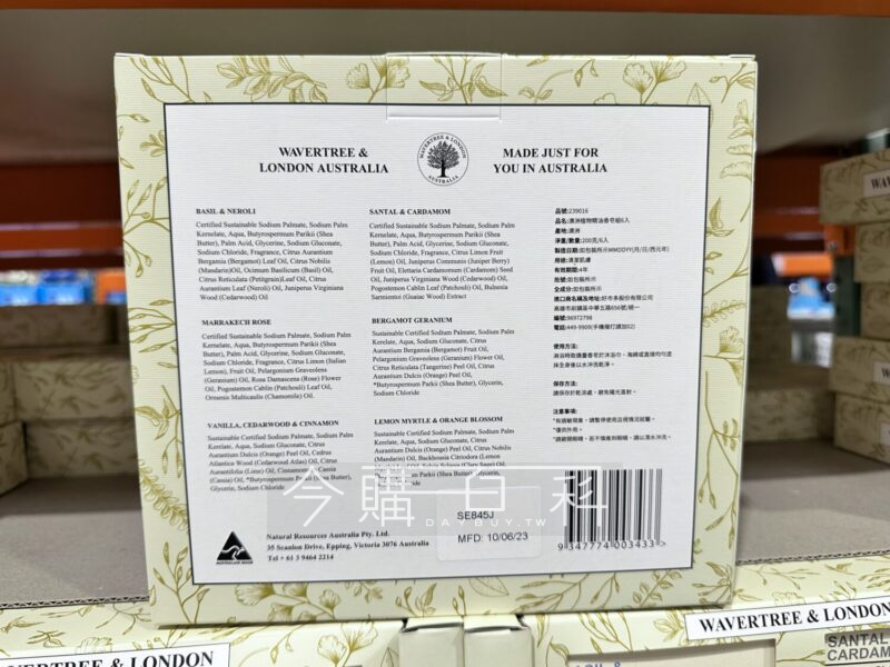 澳洲製造,植物精油萃取,同時清潔滋潤肌膚,含6種香味:羅勒+苦橙、檀香+荳蔻、玫瑰、香草+雪松+肉桂、檸檬香桃+橙花、天竺葵。