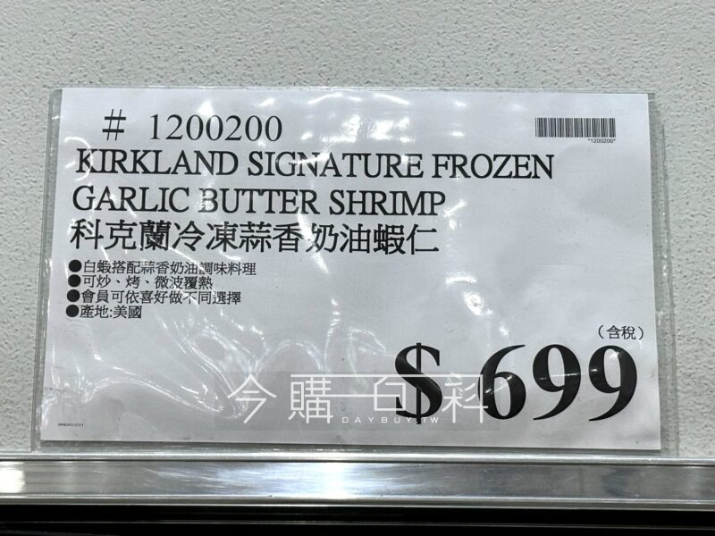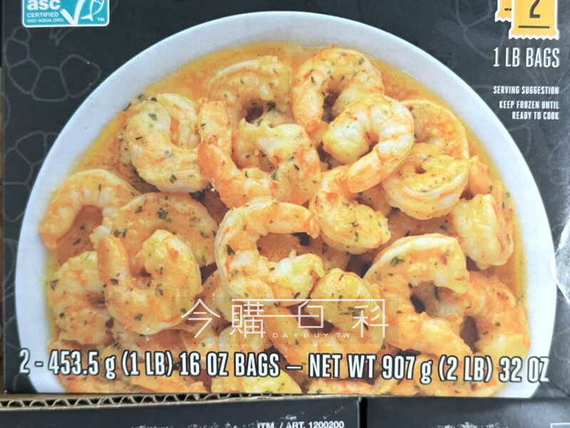 白蝦搭配蒜香奶油調味料理,可炒、烤、微波覆熱,會員可依喜好做不同選擇,產地:美國。