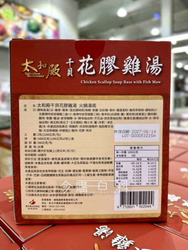 選用雞骨豬骨長時間熬製,內含珠貝、花膠、去骨雞腿,湯頭甘甜濃厚花膠軟嫩不腥,加熱即食,方便快速,亦可加入青菜、麵食、火鍋食材配料等一起烹煮。