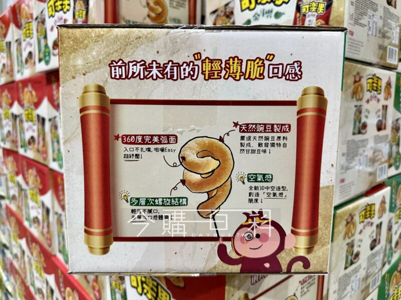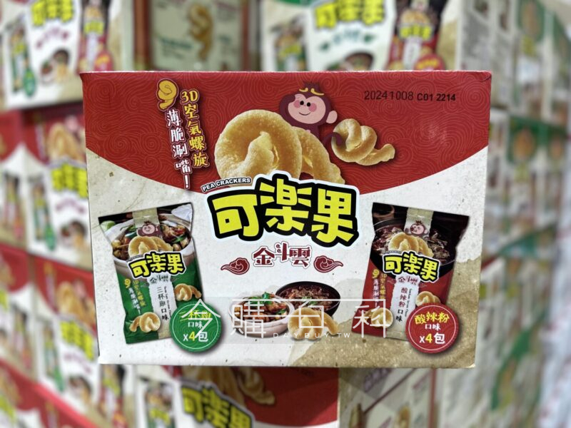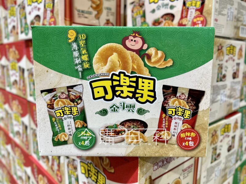 獨特3D空氣螺旋餅體,口感輕薄酥脆不扎嘴,新鮮豌豆製成帶有自然甘甜,含有豐富植物蛋白質,雙口味組合:酸辣粉風味及三杯雞風味,單吃美味,下酒更對味,產地:台灣。