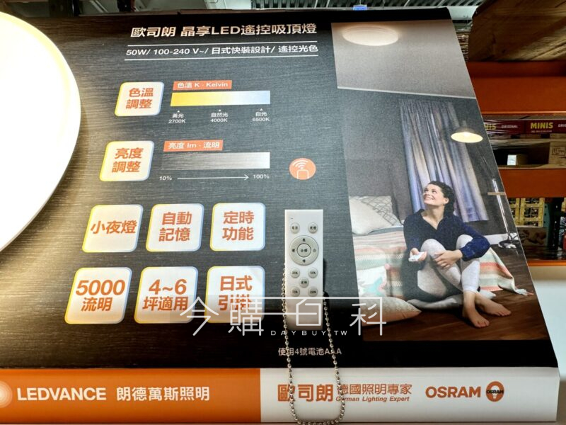 直徑約47公分,色溫可調2700K-6500K,功率:50W,光通量:5000流明,附無線搖控器使用更加便利,採用高品質LED晶片,亮度可調整設計10%-100%,安裝建議請詳閱商品說明書。
