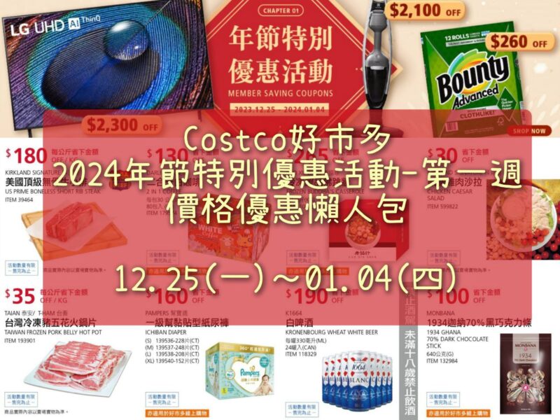 COSTCO好市多 2024 年節特別優惠專案(第一週),價格懶人包已經全數整理完畢,優惠期間 2023/12/25(一)~2024/01/04(四)