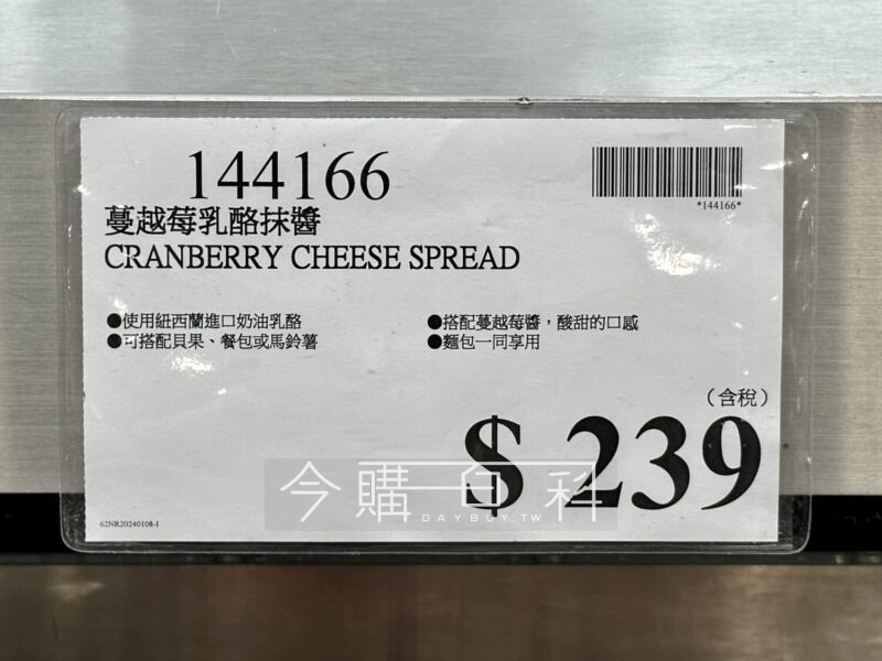 使用紐西蘭進口奶油乳酪,搭配蔓越莓醬,酸甜的口感,可搭配貝果、餐包或馬鈴薯麵包一起享用。