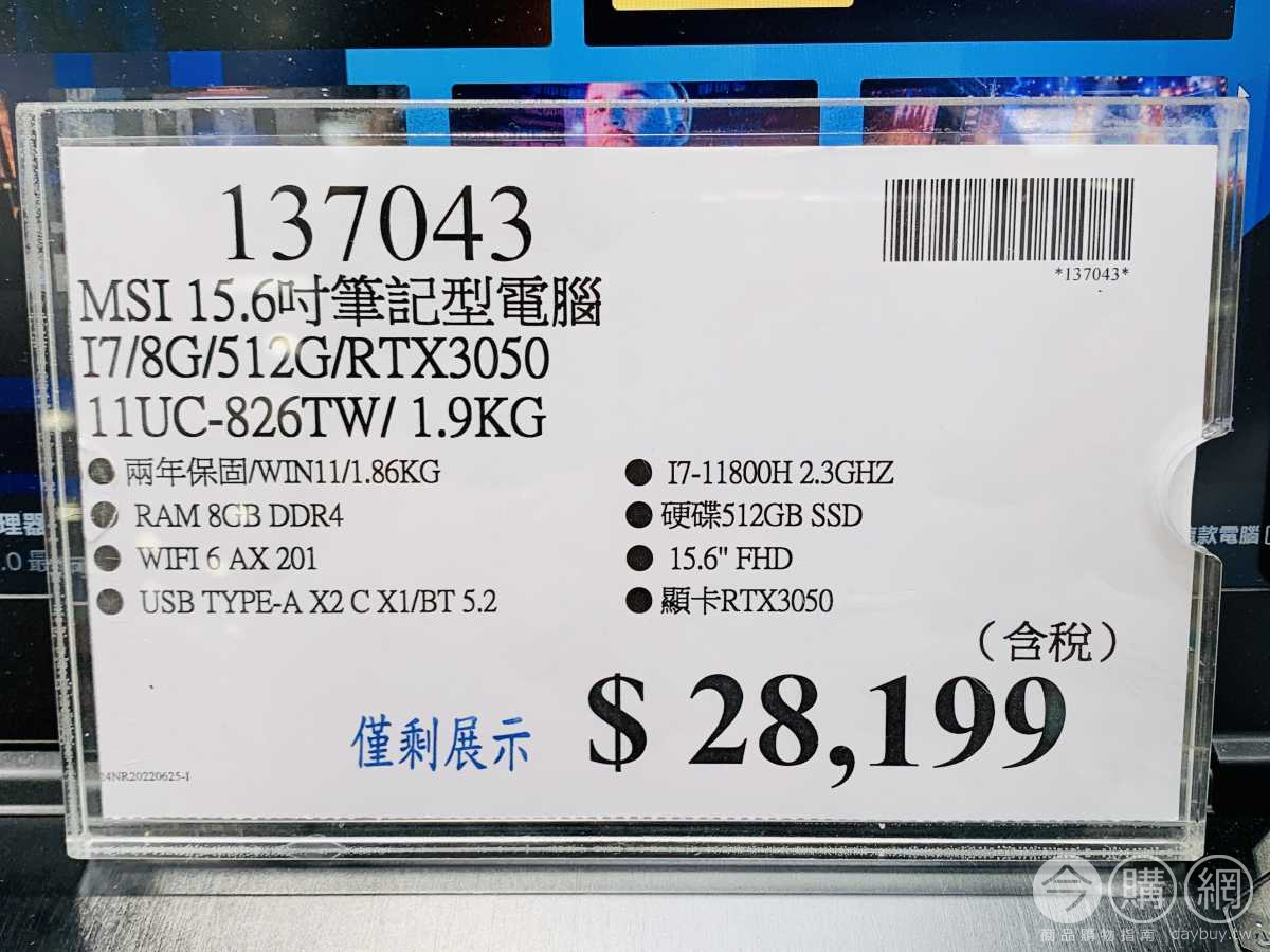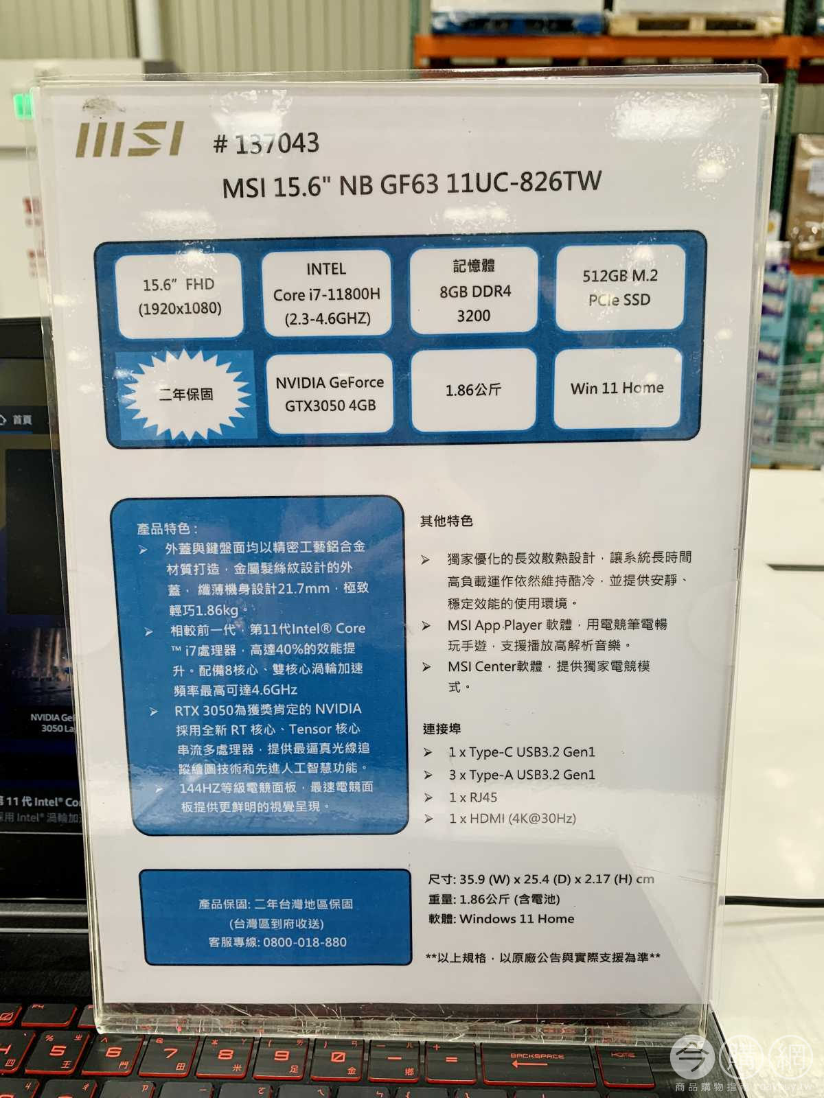 I7/8G/512G/RTX3050 11UC-826TW/1.9KG