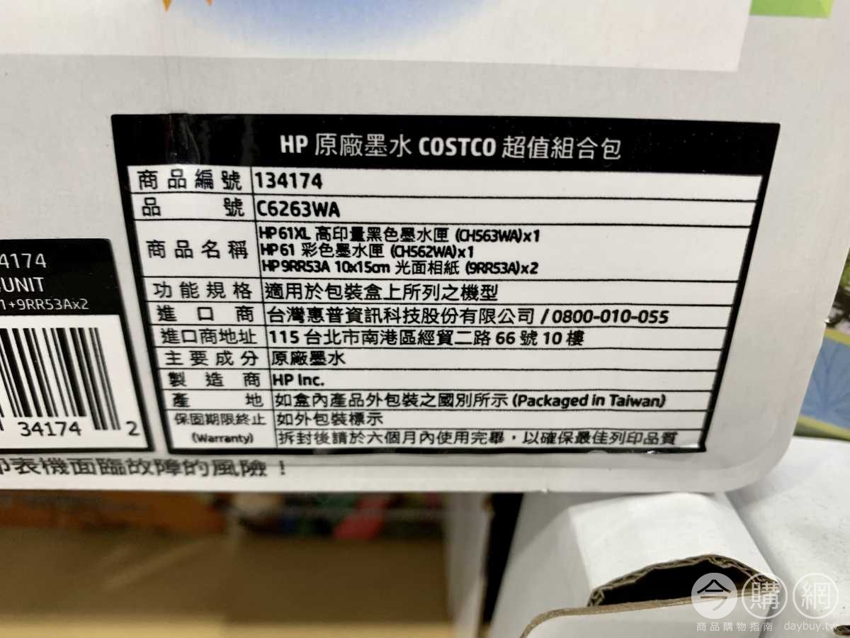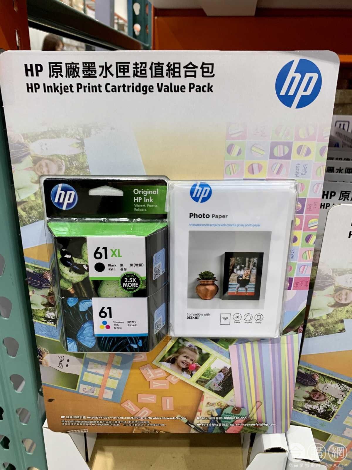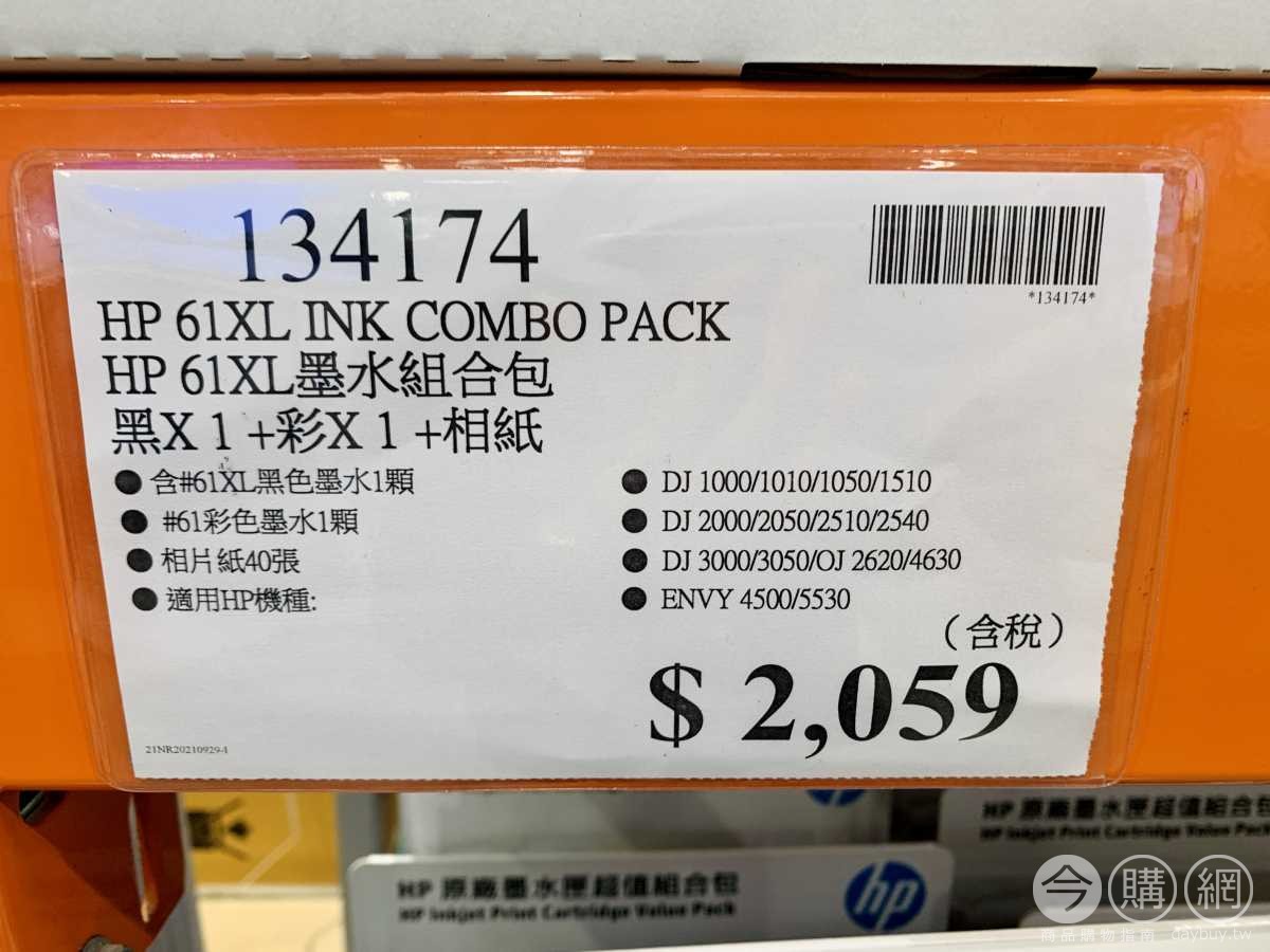 含61XL黑色墨水1顆,61彩色墨水1顆,相片紙40張。適用HP機種:DJ 1000/1010/1050/1510,DJ 2000/2050/2510/2540,DJ 3000/3050/OJ2620/4630,ENVY 4500/5530。